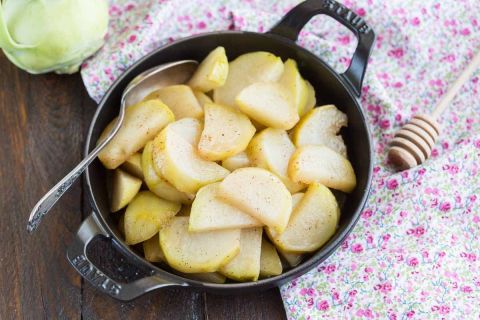 - Dans une cocotte, ajoutez les tranches de chou rave et le reste des ingrédients. Couvrez et faites cuire à feu doux pendant 20 à 25 minutes, jusqu'à ce que les choux soient tendres. Pour finir, retirez le couvercle et laissez réduire le jus pour caraméliser légèrement.