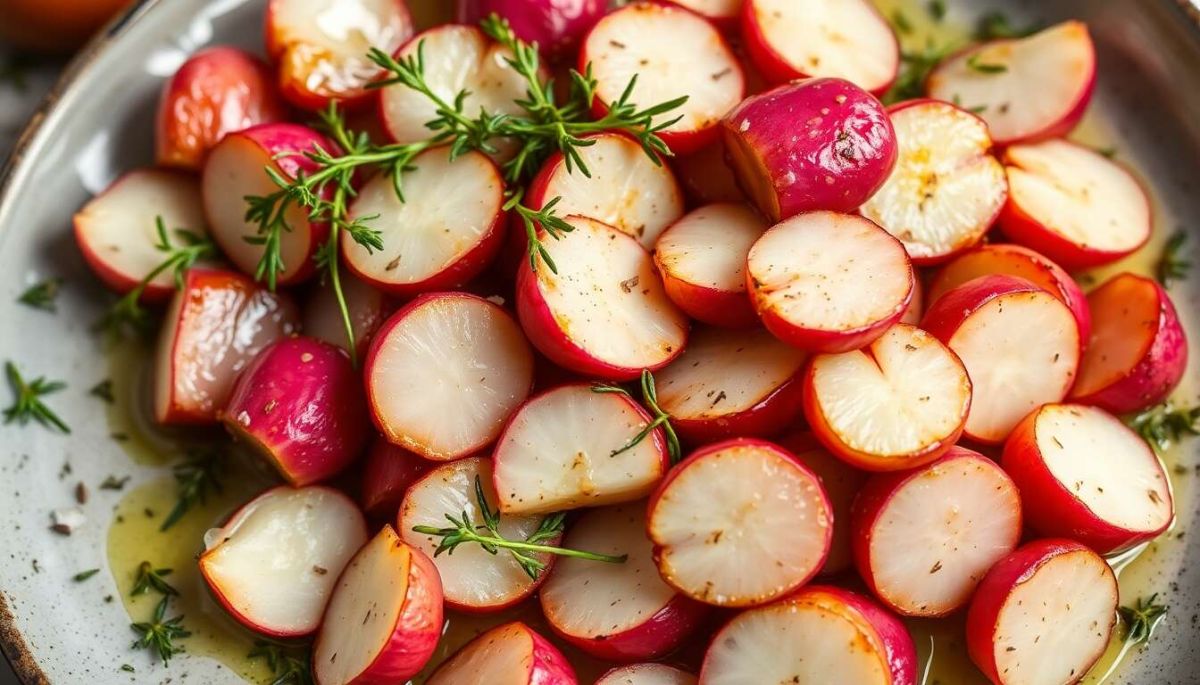 Avec leur douce saveur sucrée et leur texture irrésistible, les radis rôtis au thym se révèlent être un accompagnement original et délicieux pour vos repas. Faciles à préparer, ils sauront séduire les goûts les plus divers au sein de votre famille.