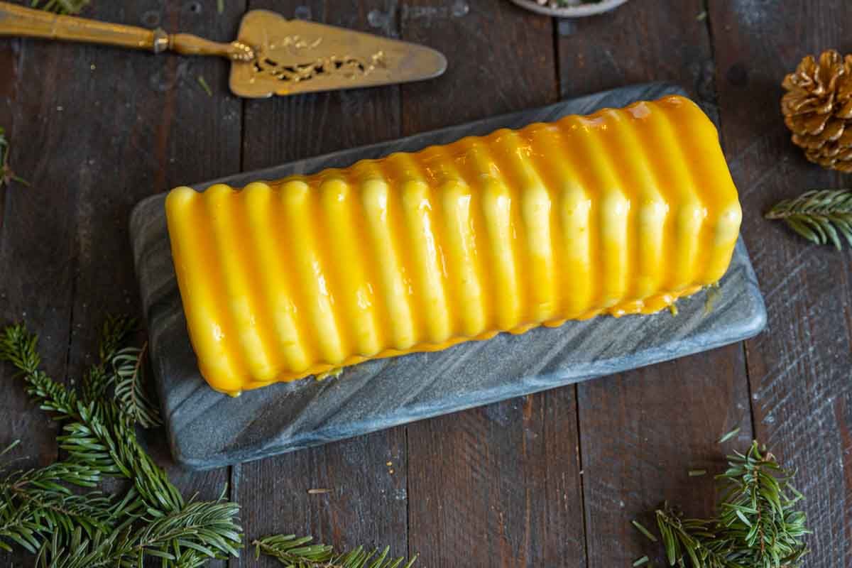 Le glaçage miroir est la dernière étape et exige un peu de finesse. Appliquez-le à la bonne température pour obtenir un rendu parfait! Utilisez-le juste après avoir démoulé votre bûche congelée.