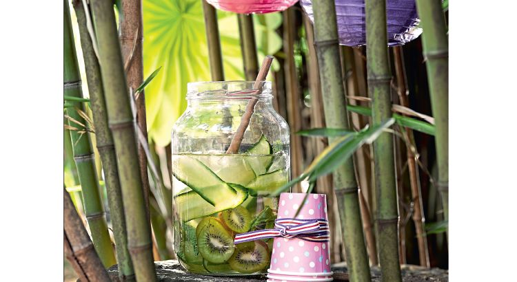 - Dans un premier temps, lavez minutieusement les citrons, puis séchez-les. Découpez-les en quartiers. Utilisez une mandoline ou un économe pour trancher finement le concombre. Épluchez les kiwis et coupez-les en rondelles. Enfin, rincez, essorez et effeuillez la menthe.