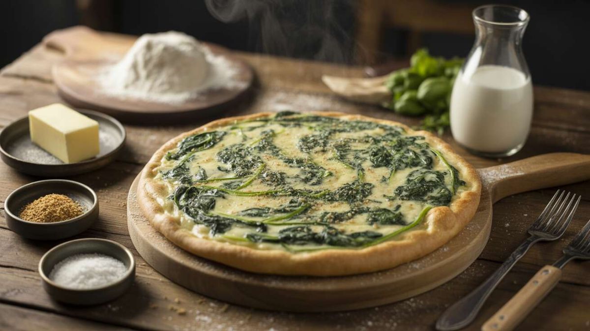 La pizza, bien que d'origine italienne, est désormais un plat prisé à l'échelle mondiale. Cette version, avec des épinards et une béchamel légère, met en valeur des goûts subtils et bien équilibrés.