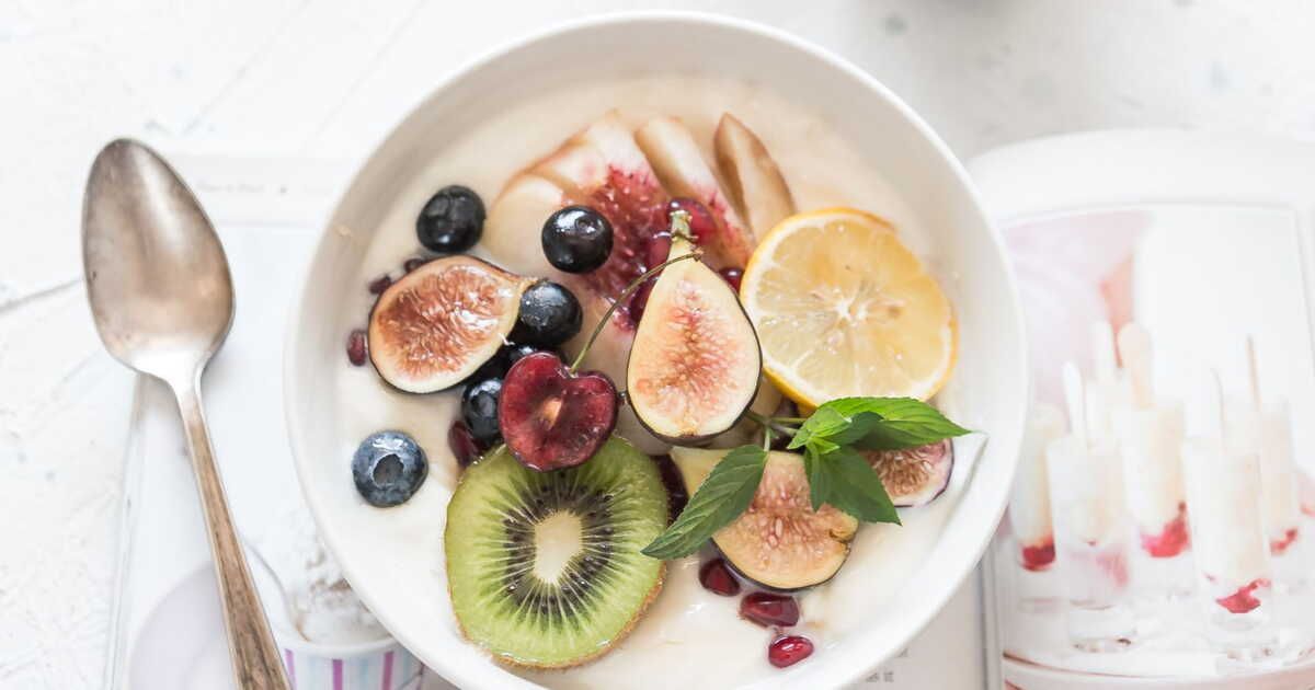- Un bol de yaourt nature agrémenté de fruits frais et de noix.