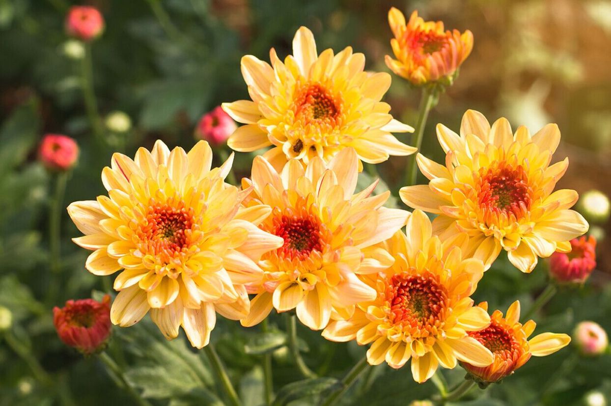 Les chrysanthèmes de jardin, dont la floraison colorée évoque le printemps tardif, méritent d'être revalorisés. Ces chrysanthèmes vivaces rivalisent de beauté avec les asters et apportent une touche de fraîcheur aux massifs automnaux grâce à leur large palette de couleurs. Les variétés telles que Clara Curtis et Lady Brooket se distinguent par leurs fleurs délicates aux teintes pastel et se marient à merveille avec un feuillage d'hortensias ou de cotinus pourpre.