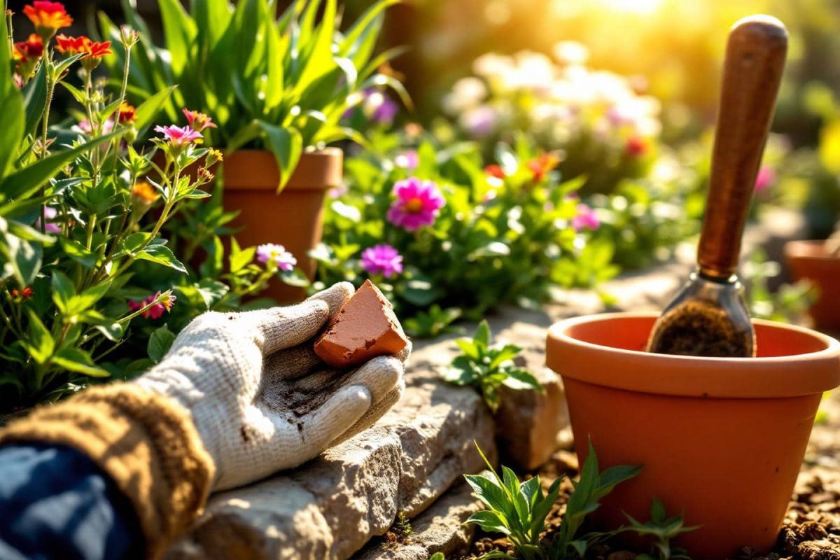 - Drainage pratique : Réduisez les morceaux en petits tessons et répartissez-les au fond des pots.